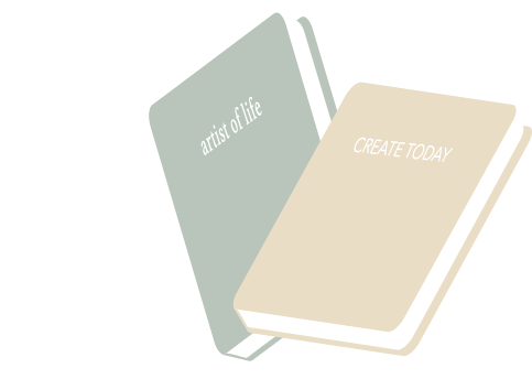 Two aesthetic notebooks, 'Artist Of Life' and 'CREATE TODAY', symbolizing creativity and daily inspiration.