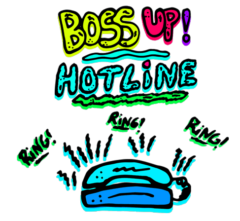 Artnuttz Bossup, the green character, holds a phone to its ear with a serious expression, ready to take charge.