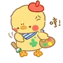 Artsybirb, the cute cartoon chicken, paints with a frustrated expression, holding a brush and palette. Features Artsy Birb, LADS Artsy Birb, and Rafayel Birb.