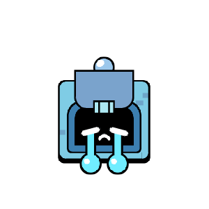 Ash from Brawl Stars, a robotic character, is shown crying with blue tears, then retracting them in a looping animation.