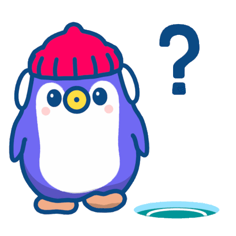 A cute purple character with a question mark beanie shrugs its shoulders, expressing 'how?' or 'I don't know'.