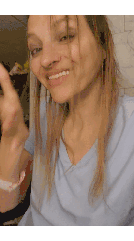 A smiling woman performs the ASL noseflick sign, indicating sarcasm or not being serious, with a playful expression.