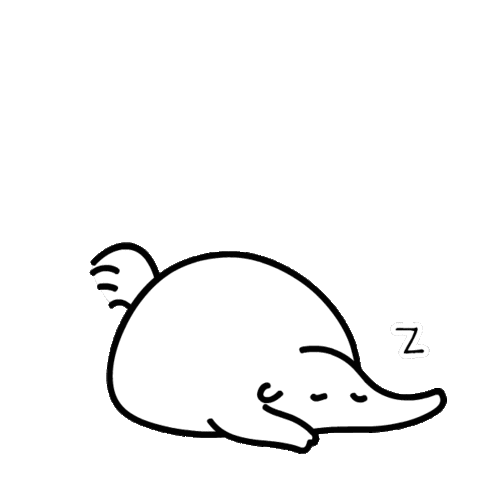 A cute, sleepy cartoon creature, resembling an anteater, is curled up and dozing off, perfect for bedtime.