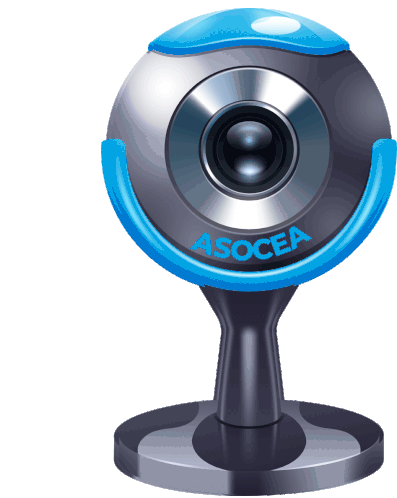 A blue and grey Asocea Fencea webcam, a common computer accessory, stands ready for use.