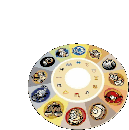 An animated sticker of an Astro Wheel, featuring zodiac signs and symbols, rotating smoothly.