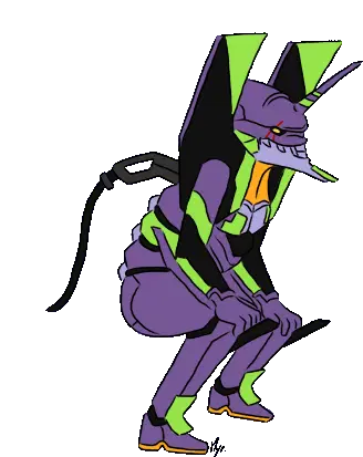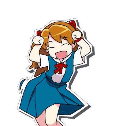 Asuka from Evangelion animated sticker, showing her in an excited or frustrated pose with hands raised and mouth open.