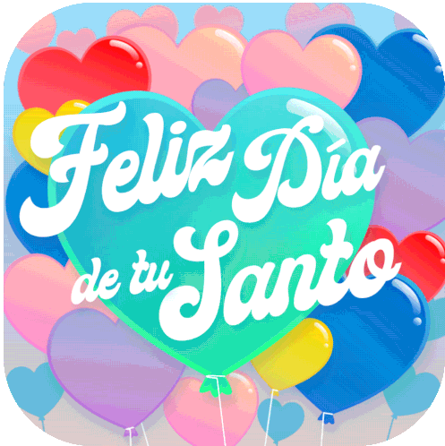 Vibrant heart balloons float with the greeting 'Feliz Día de tu Santo', celebrating Assumption Day with joy.
