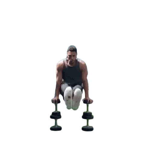 An athlete performs an impressive handstand on dumbbells, demonstrating incredible balance and strength.