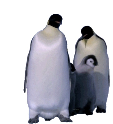 Atra Bilis presents a charming sticker of a penguin family, featuring two adults and a cute chick standing together.