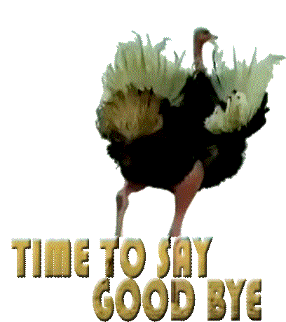 Atra Bilis's funny ostrich dances while the text 'TIME TO SAY GOOD BYE' appears, perfect for farewells.