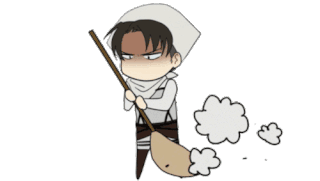 Levi from Attack On Titan diligently sweeping with a broom, showcasing his dedication to cleanliness.