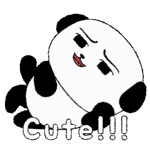 An adorable animated panda lies on its side with a charming, lovey-dovey expression, accompanied by the text 'Cute!!!'