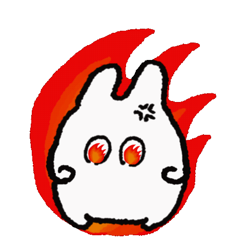 a cartoon drawing of a white rabbit with red eyes and a red flame behind it