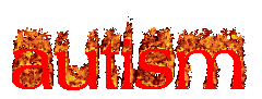 Animated sticker featuring the word 'Autism' in bold red letters, engulfed in vibrant flames, symbolizing neurodivergent pride.