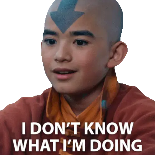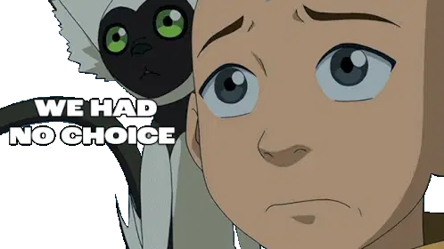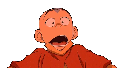 Aang from Avatar: The Last Airbender in his Avatar State, with glowing eyes and arrows changing colors.