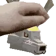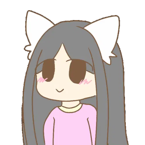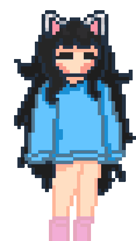 Avery, a cute pixel art neko girl with black hair and cat ears, wearing a blue sweater and pink socks, by Madebyavery.