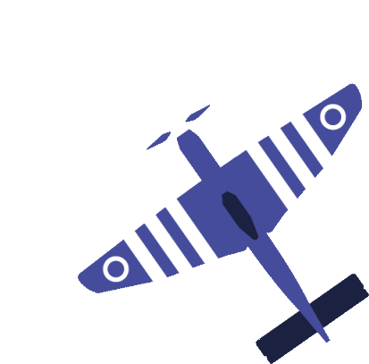 A blue propeller plane, reminiscent of those at the Aviodrome museum, rotates gently from a top-down view, featuring distinctive markings.