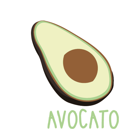 A cute animated sticker of an avocado transforming its pit into a cat's face, playing on the 'Avocato' pun.