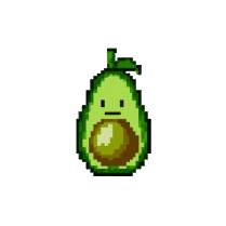 A pixel art avocado with a neutral expression, spinning continuously like a loading icon.