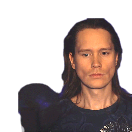 Per Fredrik Asly, also known as PelleK, avoids eye contact by looking to the side and then closing his eyes in this sticker.
