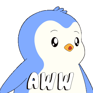 A cute Pudgy Penguin expresses disappointment with a sad face and the caption 'AWW' on its chest.