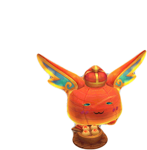 Awake Dango, the winged creature from League of Legends, blinks while holding a bowl of dumplings.