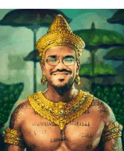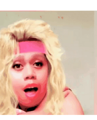 Sabariah with blonde hair and a pink headband, smiling playfully. A funny and expressive sticker for chats.