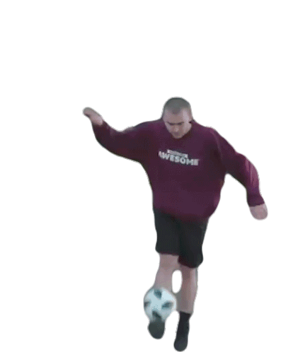 A person in an 'AWESOME' sweatshirt performs impressive soccer freestyle juggling tricks.