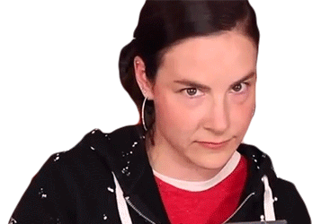 Cristine from Simply Nailogical makes an awkward 'umm' face with a side-eye expression, wearing a black hoodie.