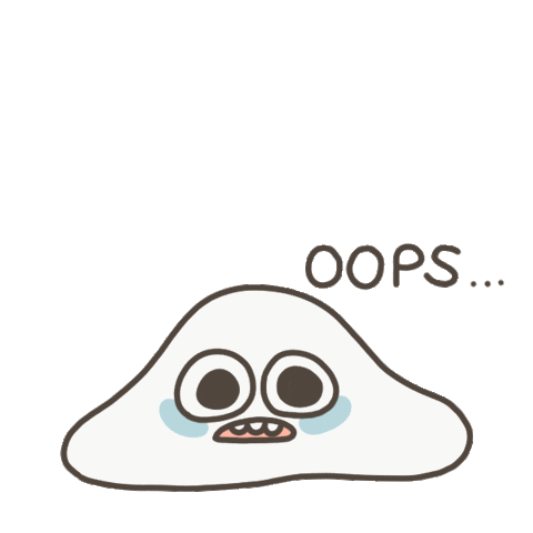 A white blob character with teary eyes expresses 'Oops...' and looks worried, embarrassed, or awkward.