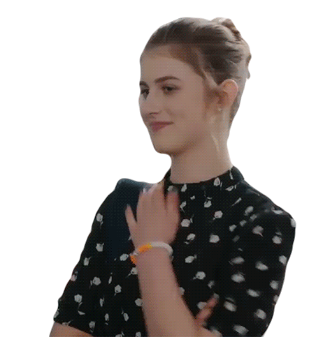 Brooke Elizabeth Butler, as Ellie, expresses gratitude with a sweet smile and hand over heart.