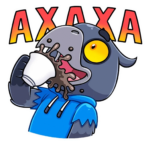 a cartoon drawing of a bird drinking from a cup with the word axaxa written on the bottom