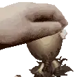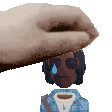 A pixel art sticker featuring a hand holding Axevr's detached head, with a single tear falling from its eye.