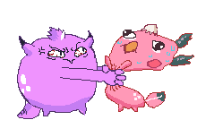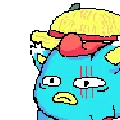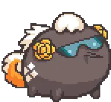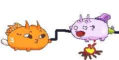 An Axie Infinity character, an Axie, is caught in a choke hold, looking surprised and distressed.