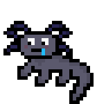 Animated pixel art axolotl with a blue tongue, wiggling its head slightly.