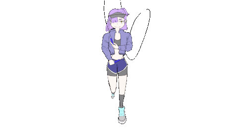 Ayatobi Miku, the purple-haired Vocaloid character, energetically jumps rope.