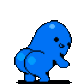 Azuki Azukibean, the pixelated blue bean character, wiggles its prominent rear in a playful dance.
