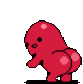 Azuki Azukibean pixel art sticker featuring a cute red blob-like creature wiggling its body with a distinctive rear.