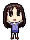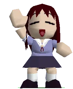 Ayumu Kasuga (Osaka) from Azumanga Daioh in a school uniform, waving her arms in a pixel art style.