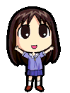 Ayumu Kasuga (Osaka) from Azumanga Daioh in pixel art style, wearing her school uniform and waving.