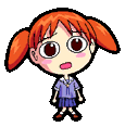 Chiyo Mihama from Azumanga Daioh in pixel art style, looking shocked and worried with wide eyes.
