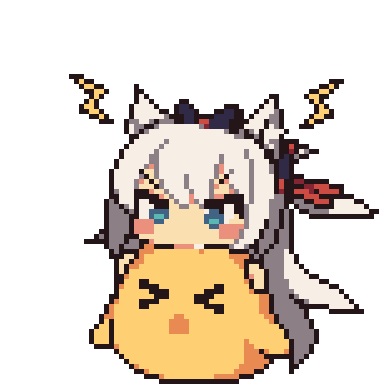 An Azur Lane pixel art sticker featuring a bashful girl with white hair, holding a grumpy yellow chick, expressing frustration.