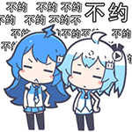 Javelin and Laffey from Azur Lane animated sticker, crossing arms to say "no" with Chinese text "不约" (bù yuē) floating around.