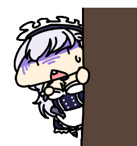 An Azur Lane maid character, with white hair and a frilly outfit, peeks nervously from behind a wall, looking shy or scared.
