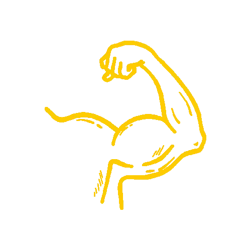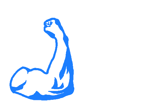 A strong azure blue arm flexes and then holds a JSON file, symbolizing power and data.