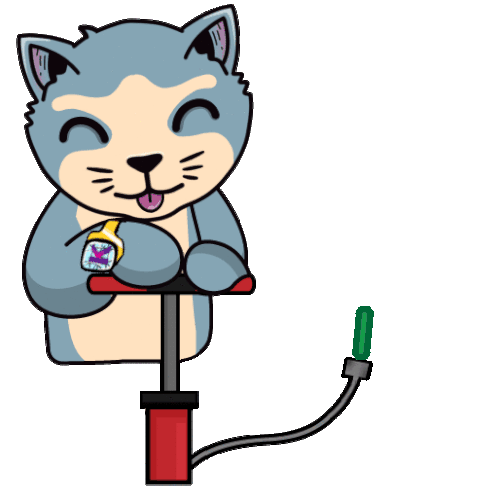 Babena Kadena, a cute cat-like character, happily pumps up a green candlestick, symbolizing growth and positive market movement.