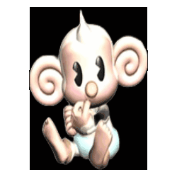 Baby, the adorable character from Super Monkey Ball, sits and blinks in this cute animated sticker, perfect for expressing playfulness.