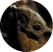 Pixelated close-up of Baby Yoda (The Child) peeking, from The Mandalorian series.