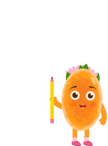 Lowies La Lorraine, a cheerful potato character, holds a yellow pencil that playfully floats, perfect for back-to-school messages.