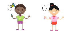 Two happy cartoon kids playing badminton, holding rackets and a shuttlecock. Perfect for sports and fun.